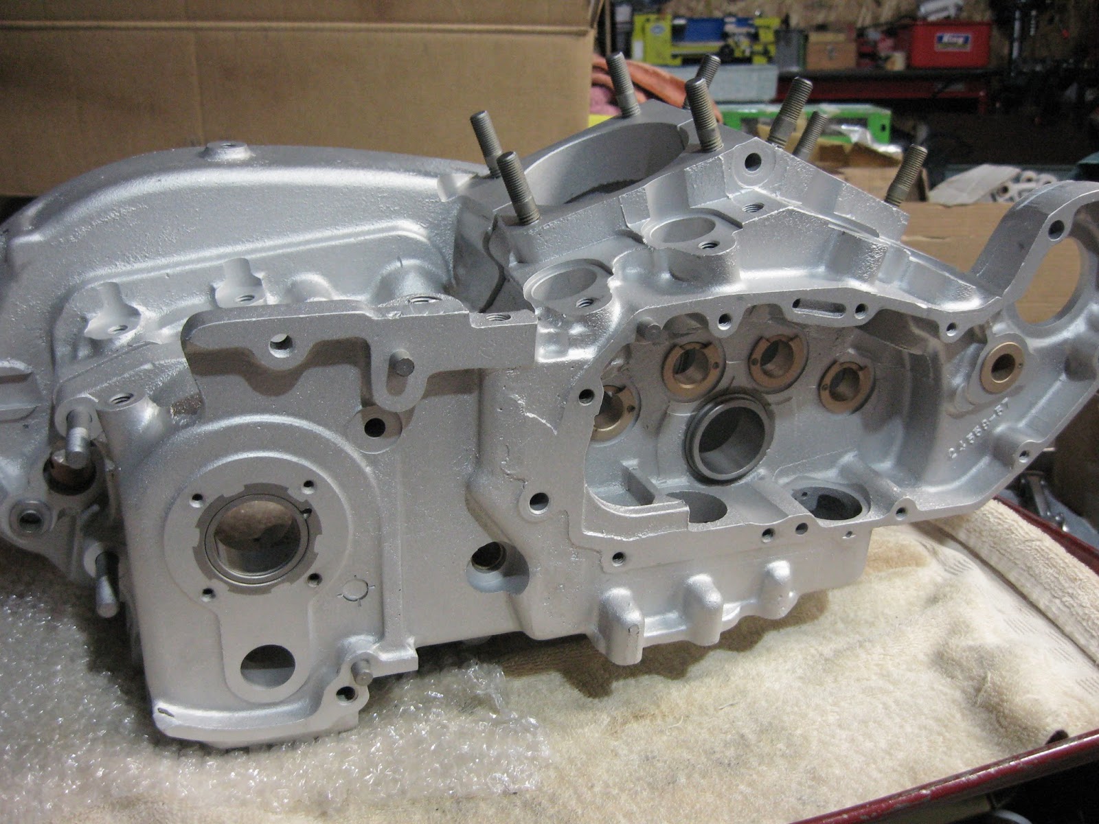 "Teach" took us out to Baas Acres for a brew, and we got the full tour(he found more of his KH parts) . . . Cylinders blasted by Gelner, . . . . . cleaned up sweet ! Assembled the flywheels and they were damn close with no truing yet - double sweet !