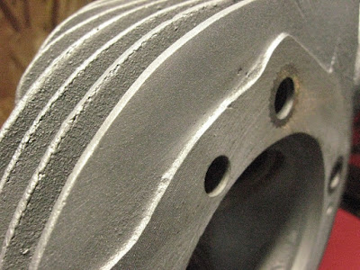 The lower cooling fin on this '48 head of Bill's was broken off and missing. Dustin recreated the fin and shaped it to perfection.